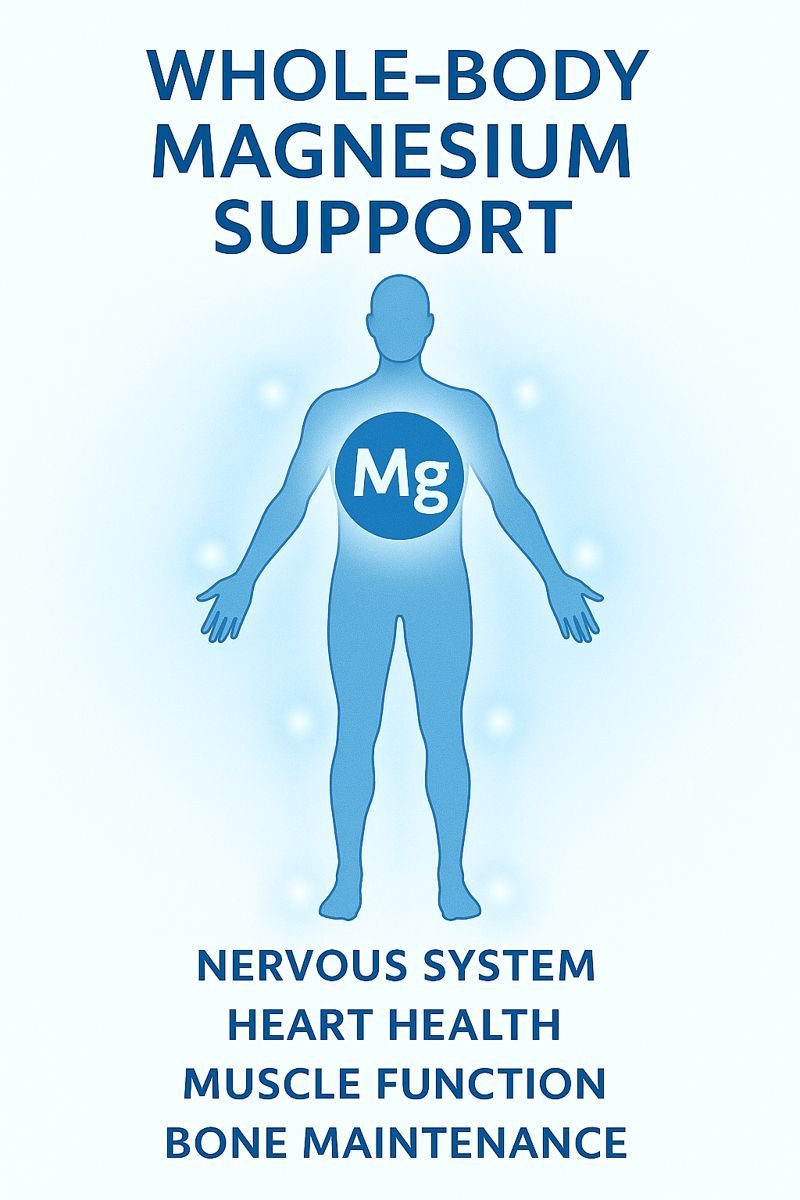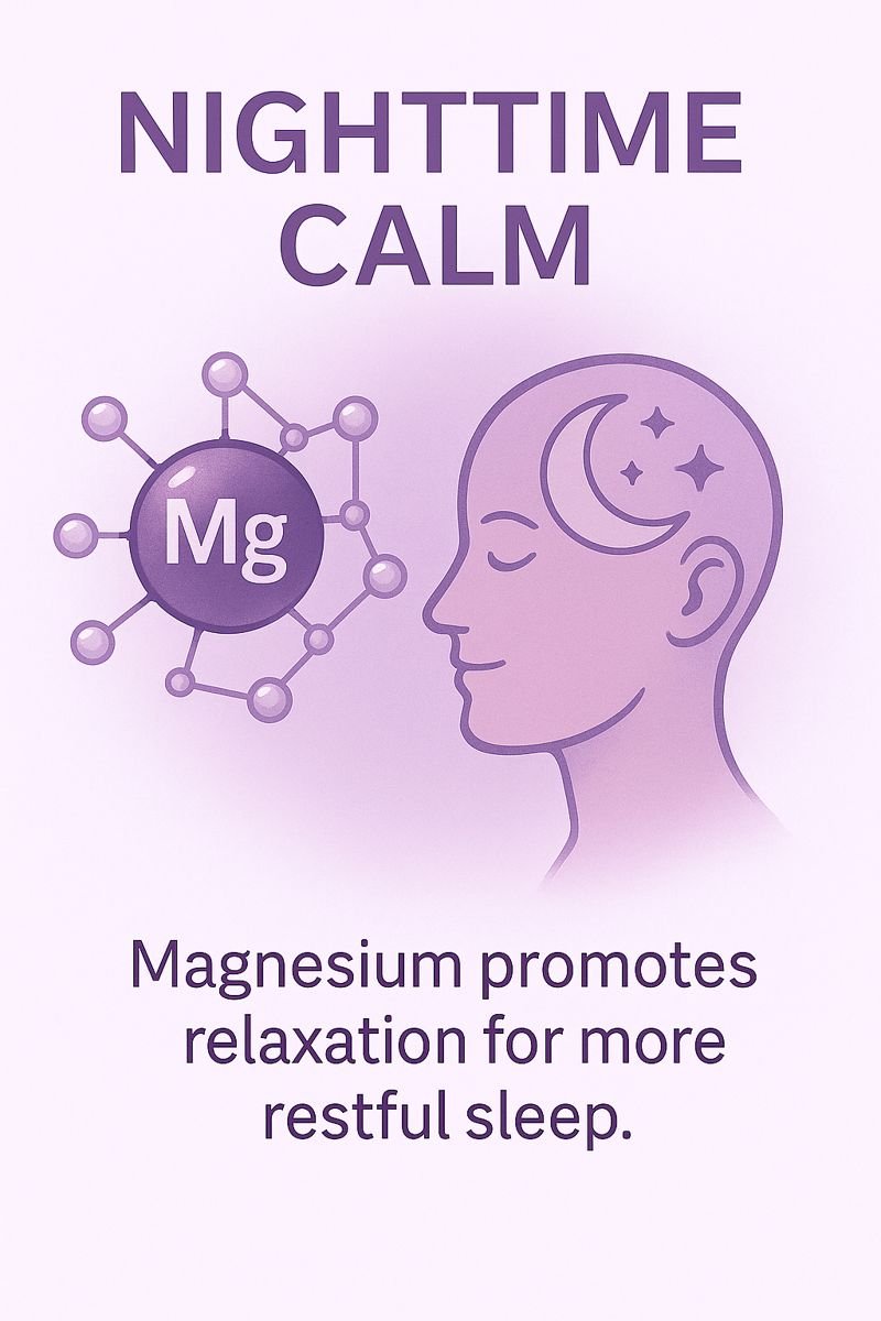 Magnesium plays a vital role in muscle contraction and relaxation, nerve signaling, energy production (ATP), electrolyte balance, digestive regularity, and sleep quality. Low magnesium levels are commonly associated with muscle cramps, restlessness, fatigue, stress sensitivity, and poor sleep.