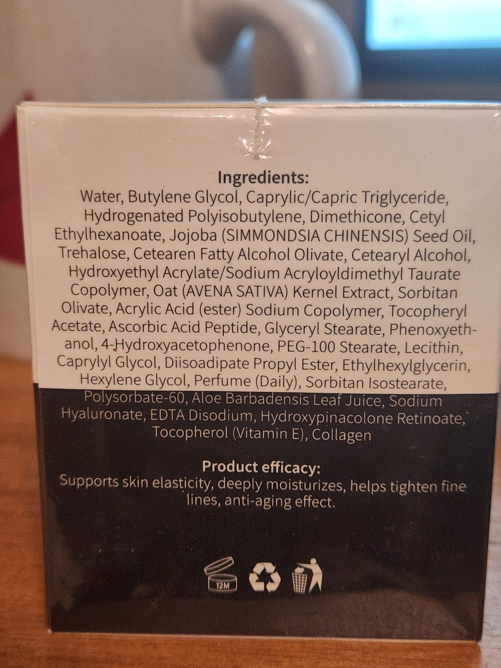 Retinol (HPR), Collagen, Hyaluronic Acid, Vitamin E, Aloe Vera, Jojoba Oil