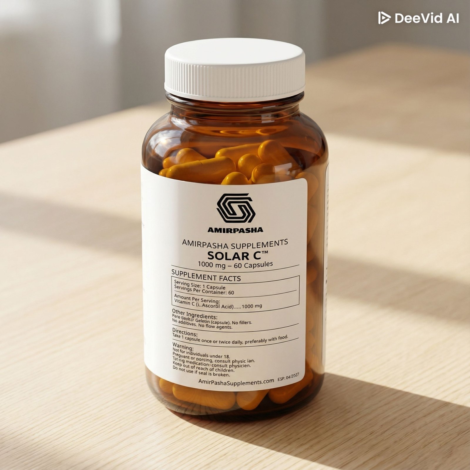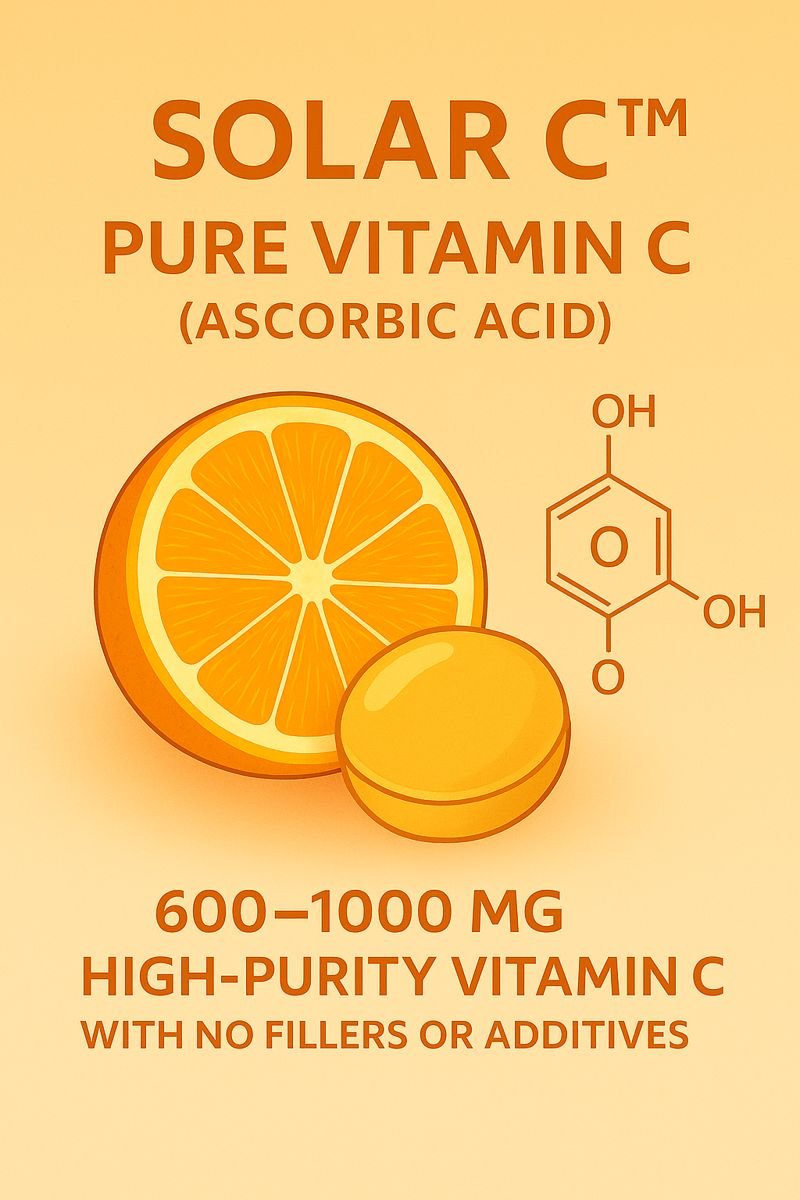 Solar C™ is a high-purity Vitamin C (L-Ascorbic Acid) supplement formulated for individuals who value clean, effective, and uncompromised nutrition. It delivers pure ascorbic acid only, without fillers, additives, artificial colors, or flavors.