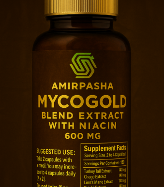 MycoGold™ – Lion’s Mane, Turkey Tail, Chaga + Niacin ( 600 mg )